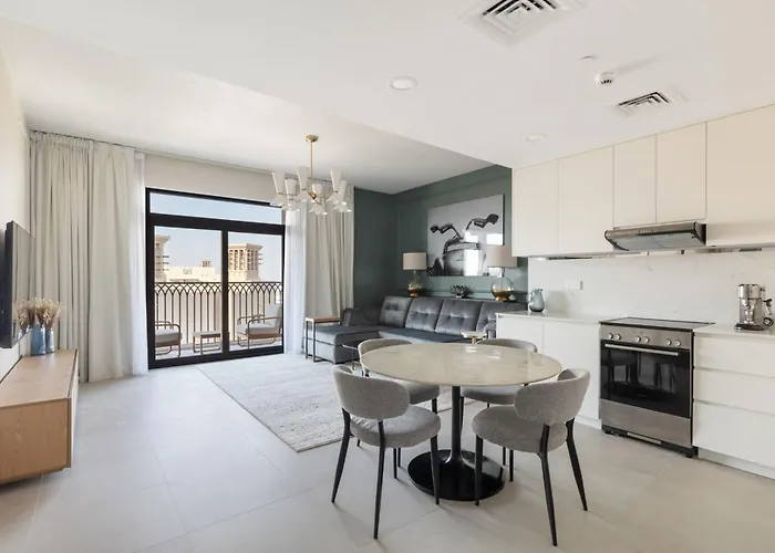 Het appartement biedt accommodatie in de wijk Umm Suqeim in Dubai, op ongeveer 10 minuten met de auto van het Winkelcentrum van de Emiraten. Park Al Barsha Pond is bereikbaar binnen 3 km.